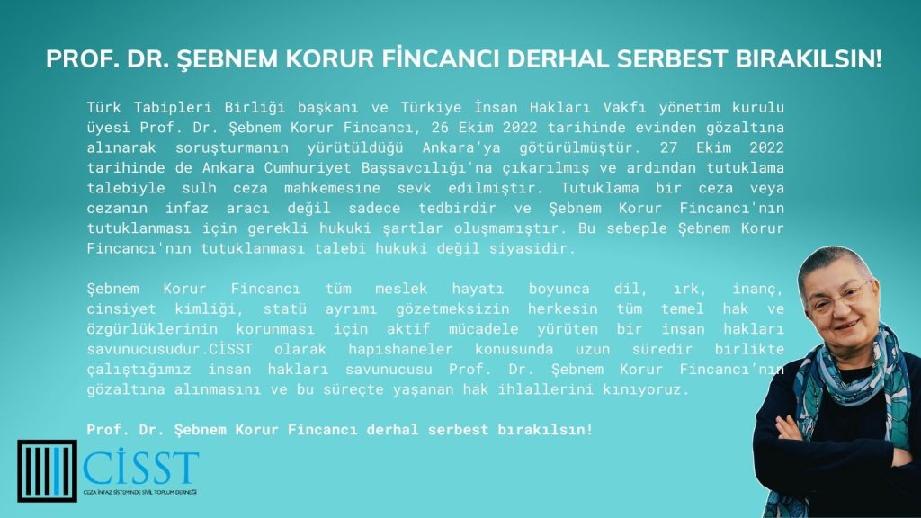 Türk Tabipleri Birliği (TTB) başkanı ve Türkiye İnsan Hakları Vakfı yönetim kurulu üyesi Prof. Dr. Şebnem Korur Fincancı, 26 Ekim