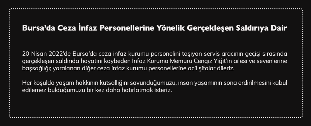 Basına ve kamuoyuna, 20 Nisan 2022’de Bursa’da ceza infaz kurumu personelini taşıyan servis aracının geçişi sırasında gerçekleşen saldırıda hayatını kaybeden