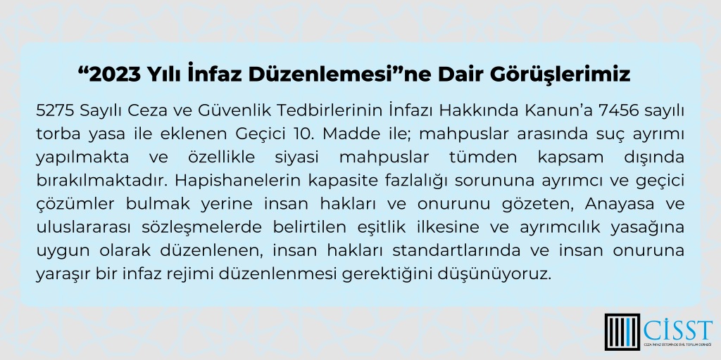 15 Temmuz 2023’te Resmi Gazetede yayımlanarak yürürlüğe giren ve 31 Temmuz 2023 tarihinden itibaren uygulanacak olan infaz düzenlemesi hakkında; COVID-19