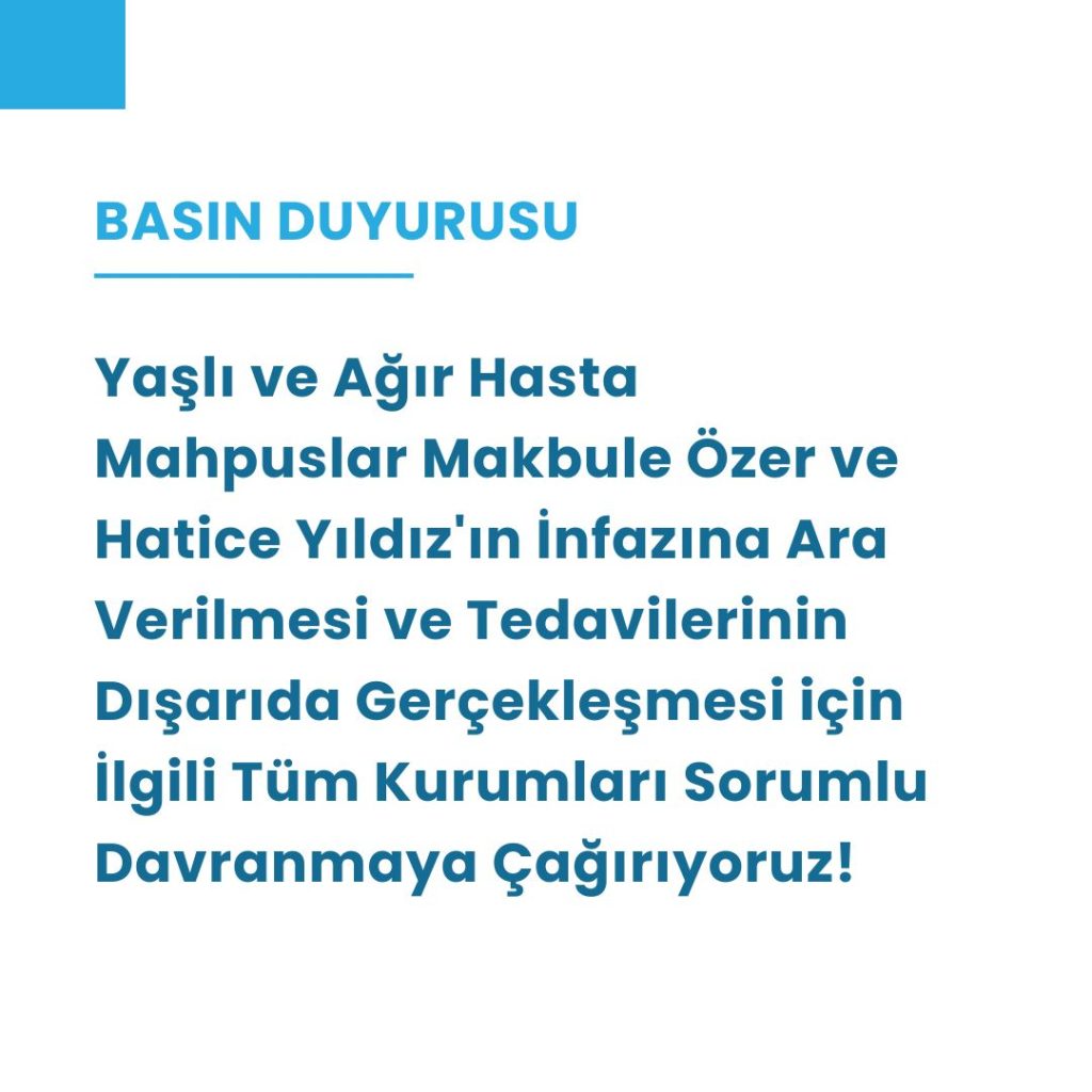 83 yaşındaki Makbule Özer Van T Tipi Kapalı Ceza İnfaz Kurumunda, 75 yaşındaki Hatice Yıldız Bakırköy Kadın Kapalı Ceza İnfaz