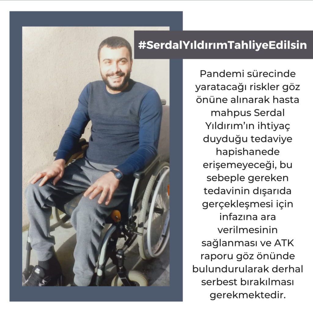 Serdal Yıldırım, 17.04.2009 tarihinde geçirdiği trafik kazası sebebiyle belden aşağısı felç kalan; vücudunun birçok yerine 30’u aşkın platin takılan ve tekerlekli sandalyeye bağlı yaşamaya başlayan